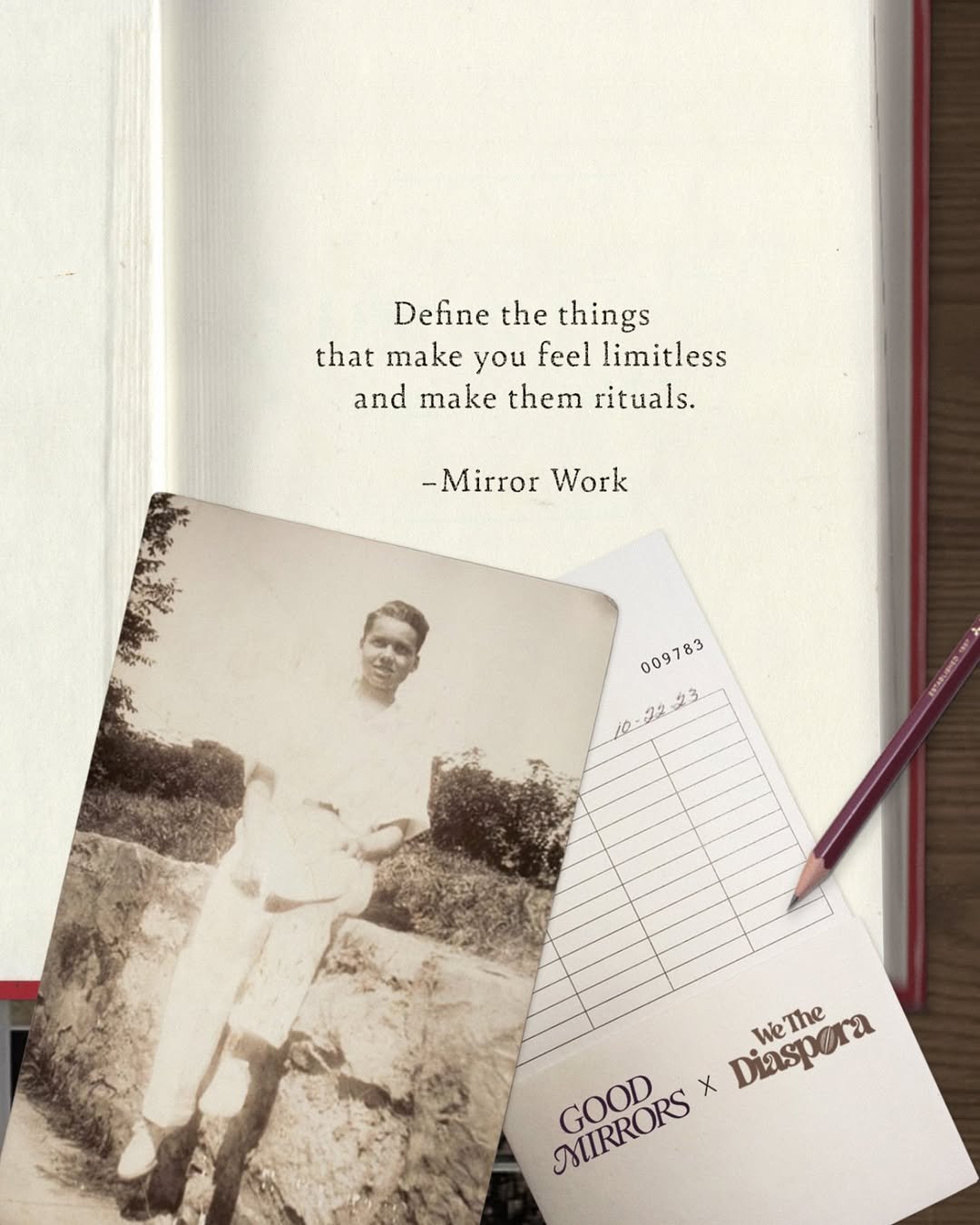 The Reflections of Us is a joint storytelling campaign between We The Diaspora and The Good Mirrors Institute, inspired by Good Mirrors’ 2021 “Mirror Work” affirmation deck. We invited participants to choose an affirmation from the deck and pair it with an archival image of someone, whether a family member, community member, or historical figure, who embodied the spirit of those words. The result is a tapestry of personal and collective memory, where affirmations become portals into lived histories and images carry the weight of both legacy and hope. Here are some of the thoughtful, moving pairings that emerged from this collaboration.